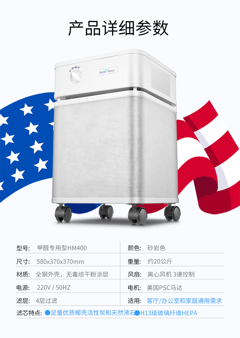 【美國原裝進口】推薦家居/房間/客廳/凈化除醛除味 適用中大面積空間 - 奧司汀空氣凈化器HM400