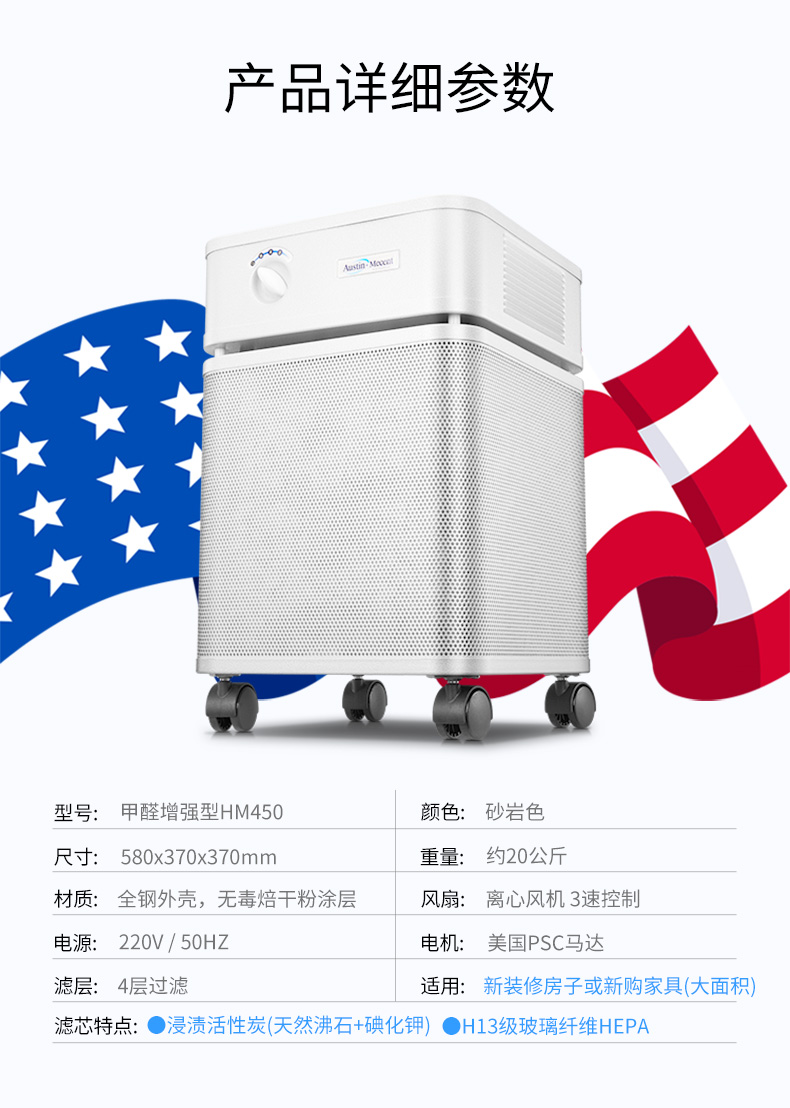 【美國原裝進口】推薦辦公區/大平層/廠房使用 適用中大面積空間 - 奧司汀空氣凈化器HM450